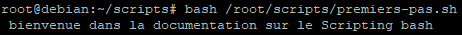 Le script s’est lancé sans problème car la commande bash a pu passer en paramètre le contenu du fichier « premiers-pas.sh »