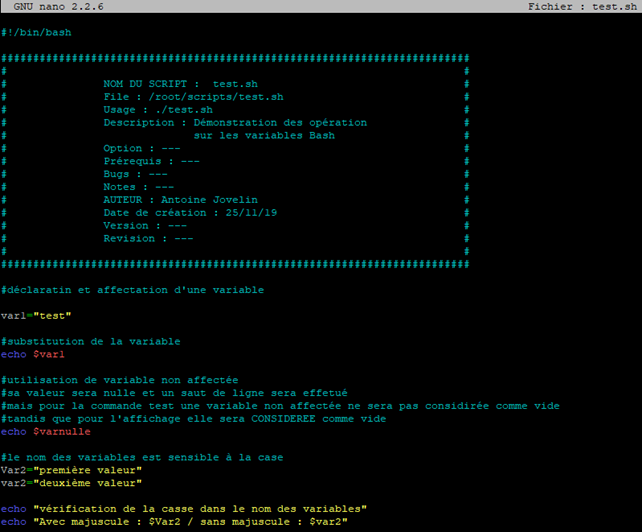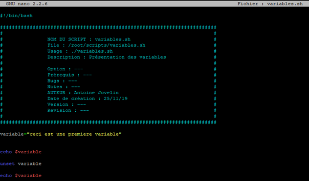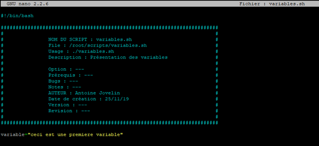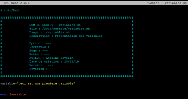 Prenons un exemple. Nous allons créer un nouveau script que l’on appellera « variables.sh »