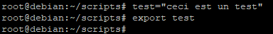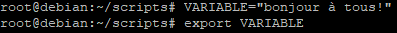Pour exporter une variable il faudra déclarer la variable puis utiliser la commande « export » comme ceci :