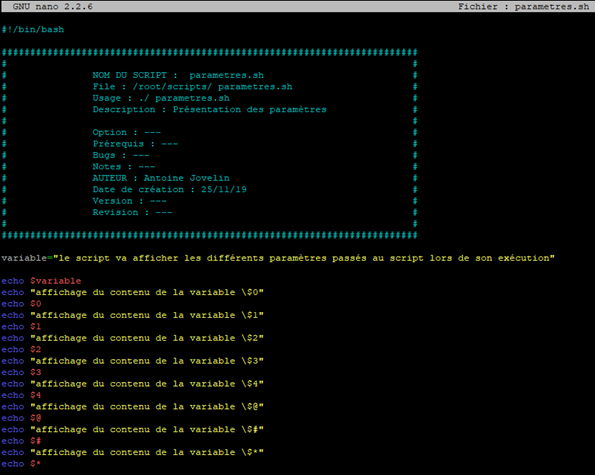 Dans un premier temps, on y écris sur la premier ligne le Shebang ainsi que le shell utilisé