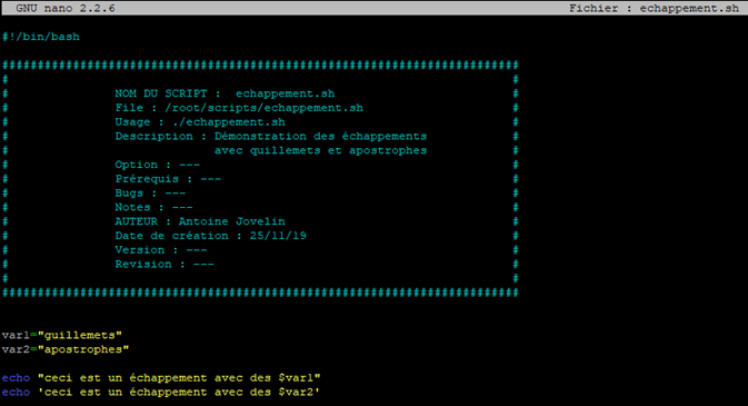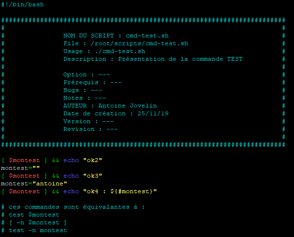 Comme cette documentation est faite sur le scripting, nous allons continuer d’utiliser un fichier des script mais vous pouvez faire le test directement depuis le terminal et depuis un fichier.