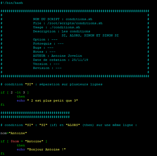 Nous l’avons vu précédemment, en bash elle s’écrira comme ceci :