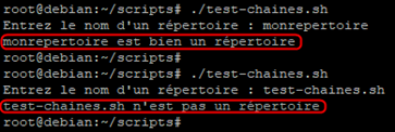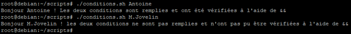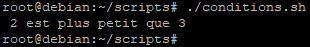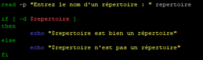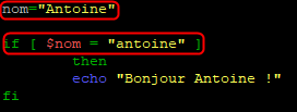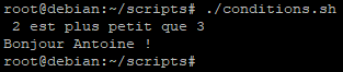 Comme nous l’avons indiqué il est possible faire une substitution de commande pour utiliser le résultat comme un argument lors d’un test par exemple avec un « if ».