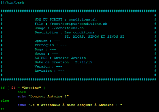 En effet, il faudra obligatoirement que le script commence par ce qu’on appelle un « Shebang » suivi du chemin absolu de l’interpréteur de commandes qui sera utiliser au lancement du script.