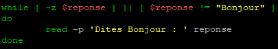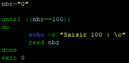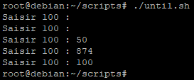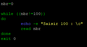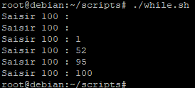 Nous allons modifier notre script « while.sh » pour qu’il demande de saisir 100 et qu’il continue tant que ce n’est pas fait.
