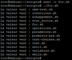 Modifions notre script « for.sh » comme ceci :