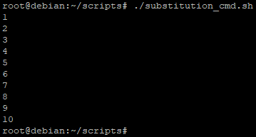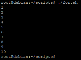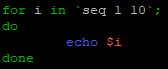 Ici la commande « seq » génère tous les nombres allant du premier paramètre au dernier paramètre (dans notre cas de 1 à 10) et ils seront tous pris en compte dans les valeurs à traiter de la boucle « for »
