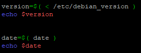Nous l’avons dit, il est aussi possible de faire une substitution de commande et de passer le résultat de sortie de cette commande comme valeur d’une variable.