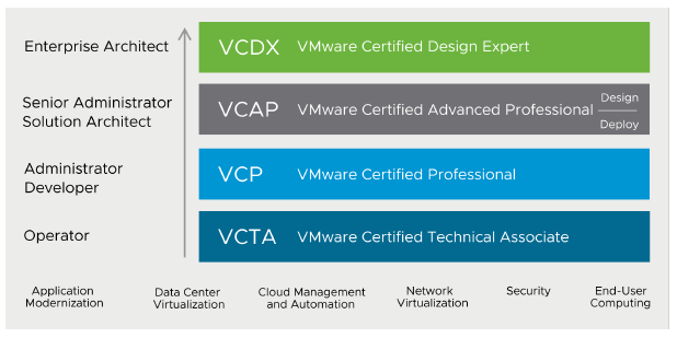 Elles établissent les normes pour les professionnels de l'informatique qui travaillent avec la technologie VMware et sont organisées en plusieurs filières, chacune composées de plusieurs niveaux de certification (jusqu'à quatre niveaux).