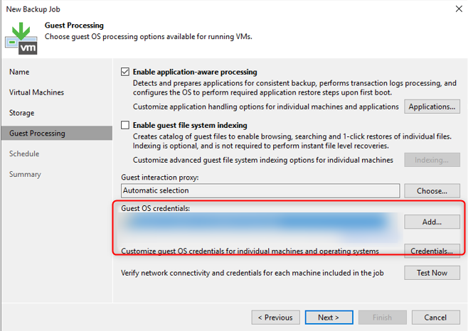 Dans la partie “Guest OS Credentials”, définir le Login / Password d'un compte pouvant se connecter en SSH sur le serveur.