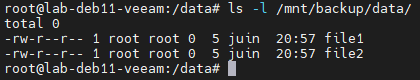Le répertoire qui a été sauvegardé est monté automatiquement dans /mnt/backup.