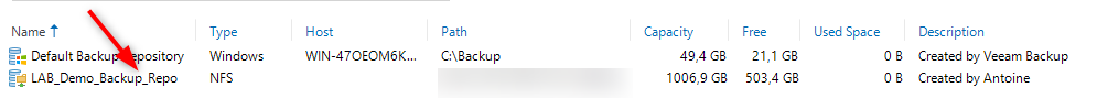 En haut à gauche, cliquer sur “Backup Repositories” pour définir l'espace de stockage qui sera utilisé comme repo pour les backups.