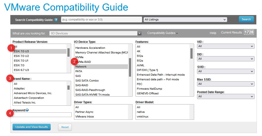 Par exemple on peut vérifier si la carte réseau est compatible avec l'installation d'un ESXi
