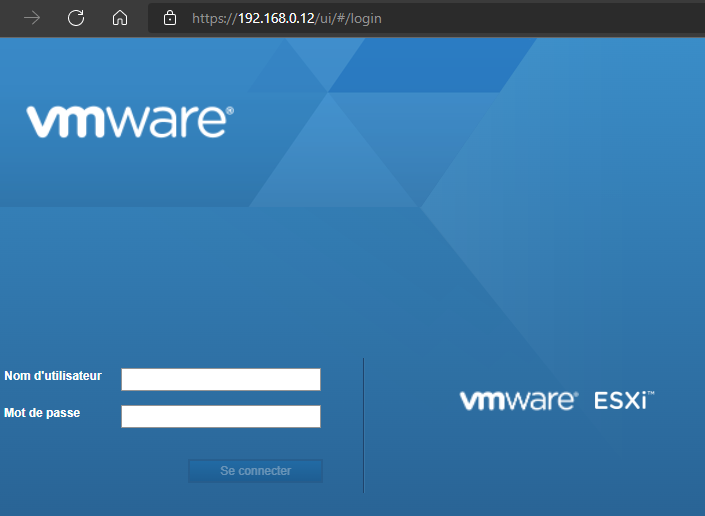 L'accès à l'interface Web de l'ESXi se fait via l'adresse IP de management que l'on a configuré précédemment.