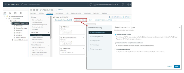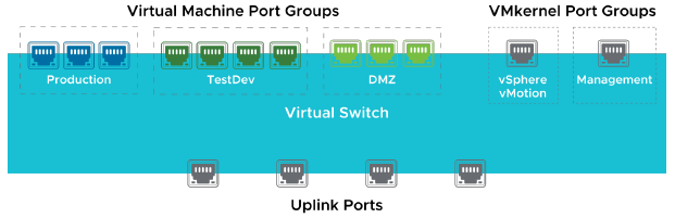 Ils prennent également en charge les services VMkernel, tels que vSphere vMotion (migration), iSCSI, NFS, et l'accès au management network.