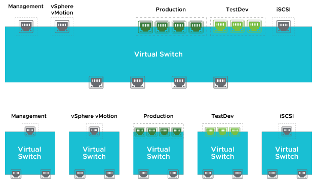 Par exemple, vous pourriez ne pas disposer d’assez d’adaptateurs réseau pour créer un virtual switch distinct pour chaque réseau.