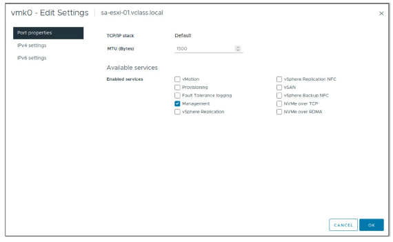 Le ESXi management network port est un VMkernel port qui se connecte à des services réseau ou à distance, y compris vpxd sur vCenter et VMware Host Client.
