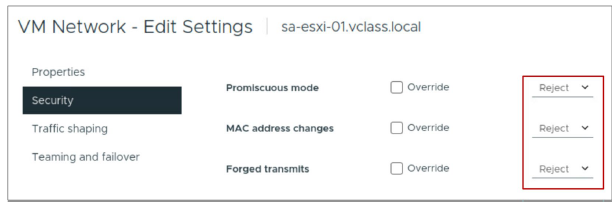 | Virtual Switch Type | Set Default Policy At | Override Default Policy At |
