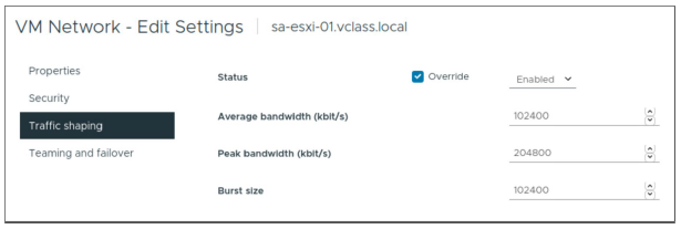Les paramètres s’appliquent à chaque virtual NIC dans le standard switch.