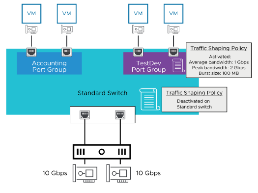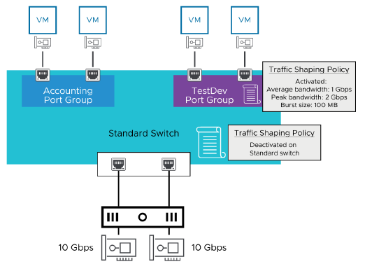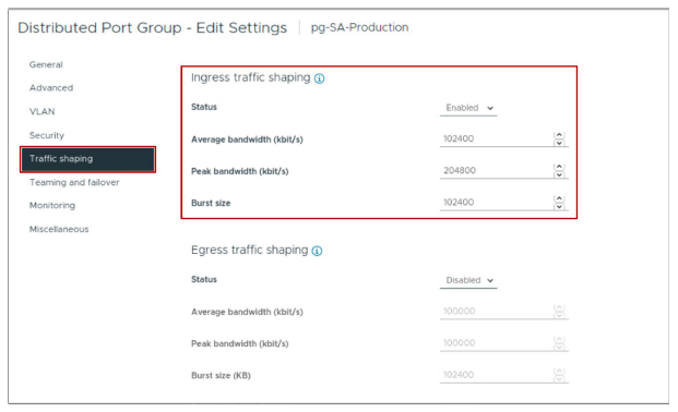 Les Distributed Switches prennent en charge le traffic shaping entrant et le traffic shaping sortant.