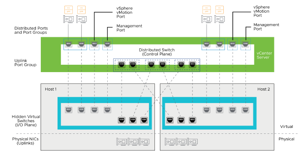 Le I/O plane est implémenté sous la forme d’un hidden virtual switch dans le VMkernel de chaque ESXi host.