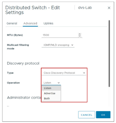 Avec CDP ou LLDP activé, vous pouvez configurer un virtual switch pour différents modes de fonctionnement :