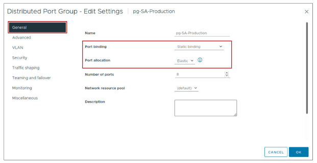 Si vous sélectionnez le static binding, le nombre par défaut de ports est fixé à huit. Elastic est le paramètre d’allocation de port par défaut.