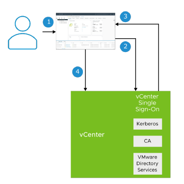 Pour plus de détails sur le flux de connexion utilisateur, consultez la documentation vSphere Authentication à l’adresse suivante : https://docs.vmware.com/en/VMware-vSphere/index.html