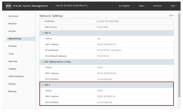 • Vous pouvez utiliser la vCenter Management Interface pour gérer vCenter, y compris le vCenter networking et les vCenter services.