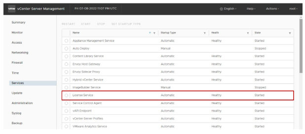 Vous pouvez surveiller l’état de santé et le statut du vSphere License Service à l’aide de l’interface de gestion de vCenter.