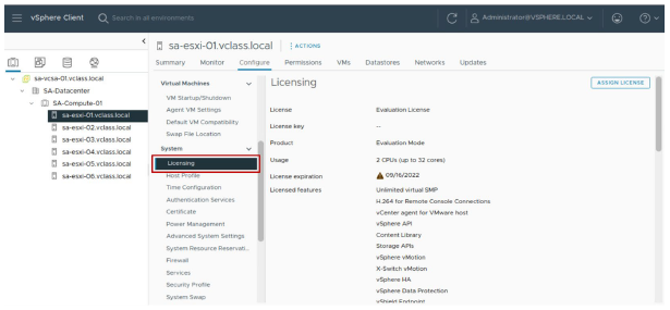Vous devez attribuer une licence à vCenter avant l’expiration de sa période d’évaluation de 60 jours.