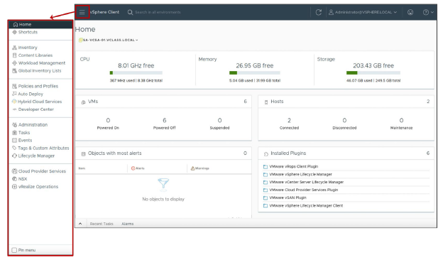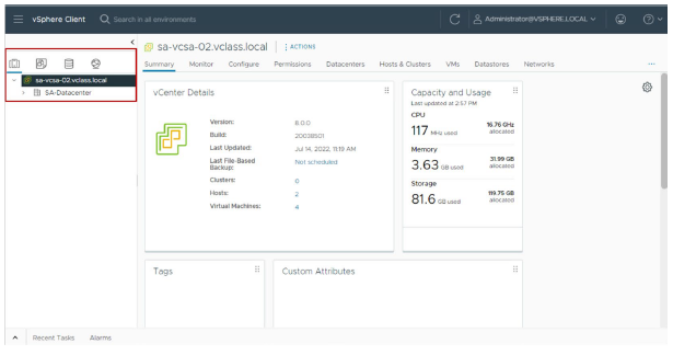 L’interface vCenter Management Interface est un client HTML conçu pour configurer et surveiller une instance de vCenter.