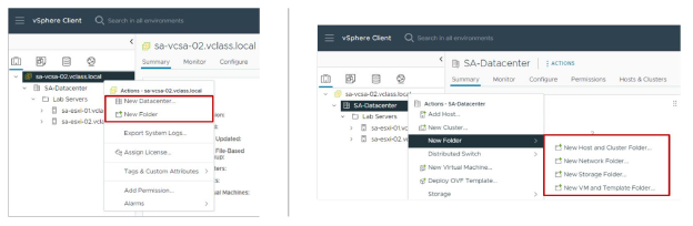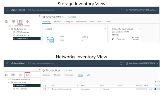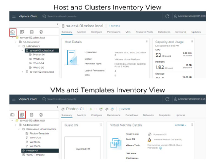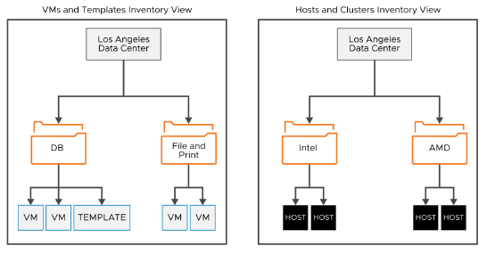 Les objects incluent les data centers, folders, clusters, hosts, datastores, networks et virtual machines.