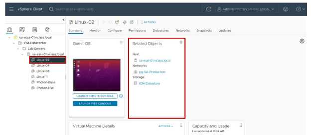 vCenter est constitué d’un ensemble de services qui s’exécutent dans vCenter Server Appliance et agit comme un point central d’administration pour les hôtes ESXi connectés à un réseau.