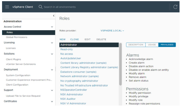 vCenter fournit quelques system roles que vous ne pouvez pas modifier.