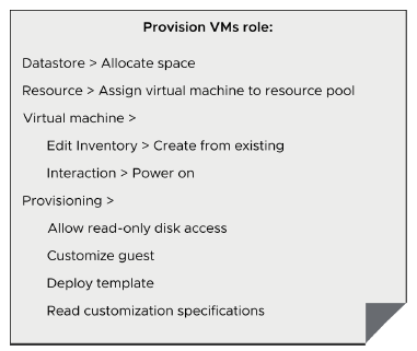 Grâce à ce système, l’administrateur vCenter peut spécifier en détail quels users ou groups peuvent exécuter quelles tâches sur quels objects.