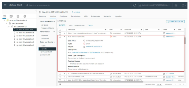 Les événements vSphere sont des enregistrements des actions utilisateur ou système qui se produisent sur des objets dans l’inventaire de vCenter :