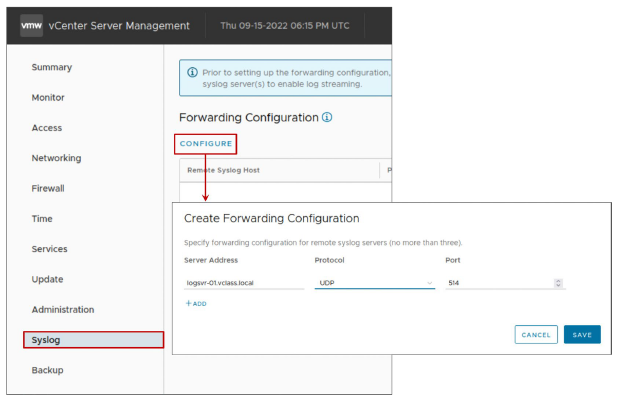 vCenter peut envoyer ses informations de log vers un serveur Syslog distant.